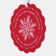 Weihnachtsschmuckkarte mit weißer, skurriler, volkstümlicher Schneeflocke in einem Punktrahmen und dem eigenen Foto. Individuell gestaltbarer Text "Wünschen Sie ein frohes Weihnachtsfest". Weißer Text auf rotem Hintergrund.