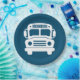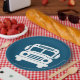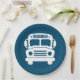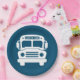 Weißer Schulbus mit blauem Hintergrund Pappteller