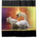 Weißer Schwan in einem See mit orangefarbenem gold Duschvorhang