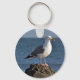 Schöne, weiße Möwe auf Felsen mit Meereshintergrund