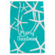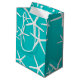 Tropischer Seestern, individuelle Weihnachtsgeschenktüte. Mittlere Papiertüte ist mit großen weißen Sternen bedeckt. Weiße Schrift Schriftart auf der Vorderseite, über hübsch türkis blau-grün, kann jede Begrüßung mit "Liebe" oder "aus" und Signatur, wie Sie wählen.