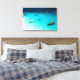 Ein perfekter Strand auf der Insel Boracay, Philippinen. Das blaue Wasser radelt kilometerweit an den weißen Strand, da die Fischerboote in der scorchenden Sonne Bob haben. Eine unberührte, weiße Sandlandschaft aus der Zeit, als ich sie in den 1990er Jahren besuchte. Kürzlich wegen Tourismus und Umweltverschmutzung geschlossen.