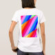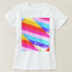 Ein strahlend weißer T - Shirt mit einem durchprägten RAINBOW-Design in Streifen, die die Körperform schlanker aussehen lassen.