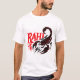 Ein nahes Aufsetzen eines weißen T - Shirt mit einem grafischen Design eines Skorpion in einem fett inspiriert Stamm-Stil, der in Schwarz und Rot dargestellt wird.