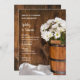 Feiern Sie sich verlobt, verheiratet zu sein und die Gäste mit der informellen und dennoch eleganten Holzwischenkugel- und White Daisies Country Engagement Party zu begrüßen. Dieses gemütliche und rustikale Ambiente lädt zu einem malerischen, digital verbesserten Blumenfoto ein, das aus einem Holzeimer mit weißen, blühenden Blume und einem braunen, verwitterten Holzfußboden besteht.