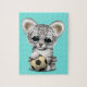 Weißer Tiger CUB mit Fußball-Fußball Puzzle