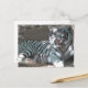 Ein weißer Tiger, der unter einem Baum liegt, schmückt diese hochwertige Postkarte. Geeignet für alle Tierliebhaber, aber auch um das Bewusstsein für diese majestätischen gefährdeten Tiere zu schärfen.