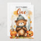 Watercolor White & Brown Happy Bear 1. Geburtstag, ein schönes und niedliches Design für jeden, der einen einzigartigen Geburtstag sucht, lädt zum Verweilen ein. Im Herbst gibt es einen phantastischen Bären im Wald mit Kürbis und Blätter. Sie können den Text bearbeiten und anpassen :) Wenn Sie Probleme mit der Personalisierung der Vorlage haben, können Sie dem Designer eine Nachricht schicken:)