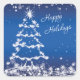 Weißer Weihnachtsbaum, Schneeflocken, blaue Sterne Quadratischer Aufkleber