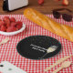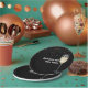 Glas Weißwein in Geschirr mit Geburtstagskaffetti und lustiges Zitat auf schwarzem Hintergrund. Zitat kann bearbeitet werden. Die Hintergrundfarbe kann geändert werden.