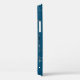 Single weiß, auf blauem abstrakten Ziegelmauerwerk, wodurch ein beängstigender Effekt entsteht. Die Hintergrundfarbe kann bearbeitet werden.