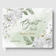 schöne weiße Blume mit einigen grünen Blätter zeigen grünes Gästebuch.