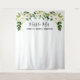 Ein Spaß-Fotohintergrund für Ihre Duschengäste zur Pose vor für Bildern am Brautparty. Aufmachung der weißen Blumen und des Grüns. Fertigen Sie mit Ihrem Text besonders an.