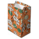 Weißes Blumendesign in Orange Mittlere Geschenktüte