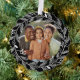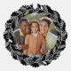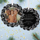 Eine schöne, einzigartige Urlaubskarte, die auch ein Weihnachtsbaumschmuck ist - oder irgendwo hängen. An der Vorderseite befindet sich Ihr individuelles Foto, hervorgehoben durch einen wunderschönen weißen Kranz. Auf der Rückseite finden Sie Ihren persönlichen Gruß, Buchstaben/Notizen und Ihre Namen. Ändern Sie einfach die Hintergrundfarbe. Festlich, elegant und klassisch - Ihre Freunde und Familie werden diese Urlaubskarte wirklich genießen.