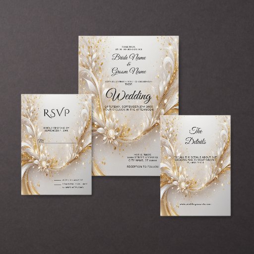 Schöne White Gold Blumendusche Einladung
