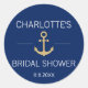 Wenn Sie etwas Einzigartiges suchen, hier sind einfach, aber elegant nautisch marineblau und weiß Design Siegel / Aufkleber / Etiketten mit Imitaten goldenen Anker in der Mitte. Fügen Sie Brauname / und Brautparty Hochzeitstag. Die Hintergrundfarbe kann in eine beliebige Farbe geändert werden. Perfekt für diese moderne, trendige Duschfeier.