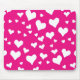 Maus Pad in einem Muster verstreuten, Kreidekunst-Effekt, weiße Herzen, auf einem tiefen fuchsienrosa Hintergrund