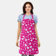Schürze in einem gestreuten Kreidekunstbild, weiße Herzen, auf tiefgründig fuchsienrosa Hintergrund
