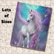 Weißes Einhorn mit violetten Blumen und Mond Puzzle