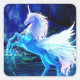 White Unicorn Pegasus Blue Moonlight Square Sticker