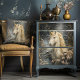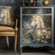 Ein weißes Einhorn mit goldenem Horn steht zwischen rosa Orchideen in einem schneebedeckten Wald, gerahmt von Winterkiefern. In der Ferne erhebt sich ein märchenhaftes Schloss durch den Nebel, während zarte Schneeflocken fallen. Dieses fantasy-inspirierte Design ist ideal für alle, die Einhörner, mythische Kreaturen und magische Winterlandschaften Lieben. Ideal, um die Möbel in einem Kinderzimmer aufzunehmen, ein Schlafzimmer zu dekorieren oder einer gemütlichen Leseecke eine skurrile Touch hinzuzufügen. Kontaktieren Sie mich für Hilfe bei der Anpassung des Textes, falls erforderlich.