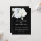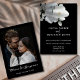 Entspannen Sie mit diesem exquisiten "Modern Black Wedding Invitation" mit eleganten weißen Blumen und einer persönlichen Touch - Ihrem eigenen Foto. Es ist eine perfekte Mischung aus zeitgenössischem Design und zeitloser Schönheit, die die Bühne für ein ganz besonderes Fest bildet.