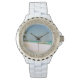 Weißes Emailluhr mit Stranddesign Armbanduhr