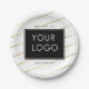 Weißes Firmenlogo für gestreifte Unternehmen Pappteller