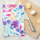 Handgemalte vibrierende Wasserfarbe-Blumen überarbeitet in ein wiederholendes Muster. Mutige Rosa und Purpur, Blitze von blauem und goldenem Gelbem stehen heraus gegen den weißen Hintergrund. Ein Regenbogen der Farben, zum herauf einen Raum zu erhellen.