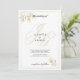 Ein elegantes Glasfenster mit weißem Gold in Monogramm initialisiert stilvolle, elegante tropische Foliage Thema Hochzeit Einladungen. Dieses Design eignet sich ideal für ein elegantes und elegantes Party-Event. Passen Sie dieses Design mit Ihren eigenen Nachrichten und personalisierten Informationen an. Alle Designs sind gedruckt.