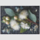 Bringen Sie Ihrem Kunsthandwerkstisch feine Eleganz mit diesem weißen, grün-blauen Dekodesign. Mit cremefarbenen Blume mit gedämpften grünen Blätter und kleinen blauen Blüten auf einem dunklen Hintergrund ist dieses Papier perfekt für Möbelaufnahmen, Junk Journals, rustikale Bar-Dekoration und saisonale Geschenkverpackungen. Jede Bestellung enthält drei große Blätter, perfekt für eine Vielzahl von kreativen Projekten. Copyright Hautegraphique.