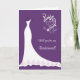 Weißes Hochzeitskleid und Wildbrett auf lila Hintergrund Bridesmaid fordern Grußkarte. Sie können den Text nach Ihren Anforderungen anpassen.