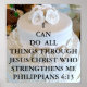 Ich kann alles durch Jesus Christus tun, der mich stärkt (Philippinen 4:13) Poster auf dem Hintergrund eines weißen Hochzeitstortes