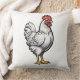 Eine Darstellung im Stil eines Cartoon zeigt ein stolzes, weißes Huhn mit detaillierten Federn und einem kräftig roten Kamm. Das Huhn steht zuversichtlich vor einem schlichten Hintergrund und hebt seine scharfen, kühlen Konturen hervor.