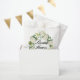 Fügen Sie Ihren Geschenken einen Blumenakzent mit diesen individuell anpassbaren Gefälligkeitstaschen hinzu. Der Blumenkranz in Aquarellfarben mit weißen Hydrangeas und Grünpflanzen. Diese Blumenbeutel sind ideal für Frühlings- und Gartensitze. Personalisieren Sie Ihre eigenen Texte.