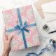 Weiße Hydrangea-Muster auf rot-rosa Hintergrund. Die Hintergrundfarbe kann geändert werden.