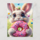 Adorable weiße Kaninchen mit einem rosa verglasten Sprinkle Donut AI generiert Kunst