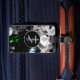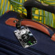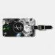 Weiße Kristalle im Schwarzen Weltraum Monogramm Gepäckanhänger. Personalisieren Sie einzigartiges Reisezubehör mit Ihrem Initial und Namen. Zauberhaftes Foto von schönen, durchsichtigen, weißen und schwarzen Kristallsteinen mit einem Hauch von Grün, die wie aus schwarzem Raum aussehen.