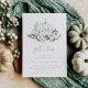 Rückgang in Liebe mit diesem ätherischen botanischen Design für Herbst-Brautpartys. Das elegante Design besticht durch einen weißen Wasserfarbenkürbis, der mit den Initialen des Paares beschriftet und von weißen Blume, grünem Blattwerk und Eukalyptus-Blätter flankiert ist. Darunter erscheint neben den Angaben zu Ihrem Brautparty "Fall in Liebe".