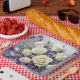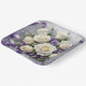Weißes, lila Rose Bouquet, weiße Bänder Pappteller