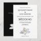 White Magnolia Elegant Floral auf Black Wedding Invitation entworfen mit weich weißen magnolischen Blume auf einem schwarzen Hintergrund mit weißem Text. Der Einladungstext beinhaltet: Zusammen mit ihren Familien, der Braut und dem Groom, fordern Sie die Ehre Ihrer Anwesenheit bei ihrer Hochzeit, Datum und Uhrzeit, Ort und Adresse der Hochzeit, Empfang zu folgen. Der umgekehrte Text enthält: UAWG und die Kontaktdaten. Um Ihre persönlichen Daten zu personalisieren, fügen Sie einfach Ihre Daten in unsere einfache Vorlage ein und ersetzen den Beispieltext.