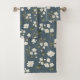 Weißes Magnolium Wasserfarbenes Muster Schwarz Badhandtuch Set