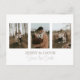 Erzählen Sie Ihren besonderen Tag mit dieser modernen Foto-Collage Save the Date Postcard, mit drei romantischen Fotos schön gerahmt in Weiß und überlagert mit fett Datteltypografie. Auf der Vorderseite steht ein zartes Drehbuch "Save the Date", und auf der sauberen Rückseite werden die Initialen des Paares neben einem eleganten botanischen Akzent dargestellt. Dieses Design verbindet rustikalen Hochzeitszauber mit minimalistischem Stil und einer neutralen Farbpalette und macht es zu einer idealen und leicht zu versendenden Hochzeitsankündigung. Eine ausgeklügelte Wahl für Paare, die Liebe mit weicher Script-Touch und persönlichen Verlobungen-Highlights feiern.