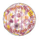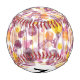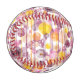 Nahtloses weißes Muster mit großen und kleinen durchsichtigen lila orangen und gelben Bälle und Streifen (Vektor EPS 10) © und ® Bigstock® - Alle Rechte vorbehalten.