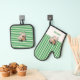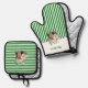 Weißes Oberteil mit grünen Streifen Ofenhandschuh & Topflappen-Set