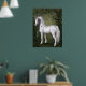 Weißes Pferd im Wald mit Vögeln drucken Poster