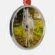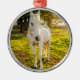 Keramik mit Porträtbild eines weißen Pferdes auf dem Bauernhof.