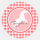 Weißes Pferd; Rot und Weiß Gingham Runder Aufkleber