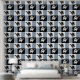 Schwarzes Pferd und weißes Pferd galoppieren Elegantes kariertes Muster Ändern Sie die weiche graublaue Hintergrundfarbe, um Ihre Dekoration Anzug zu geben
